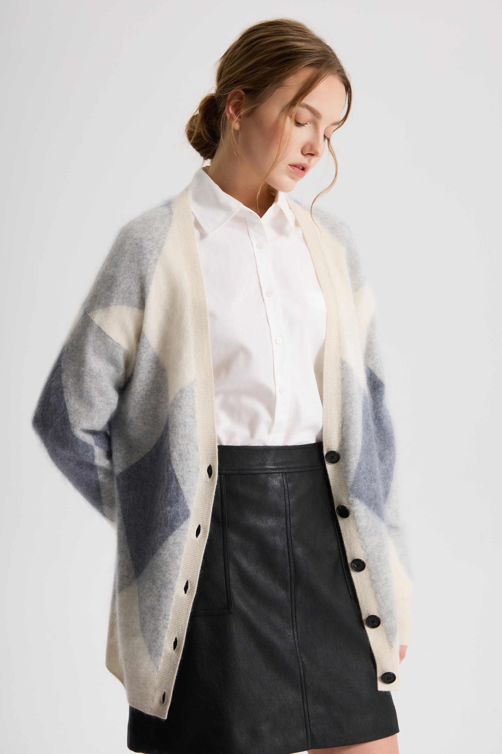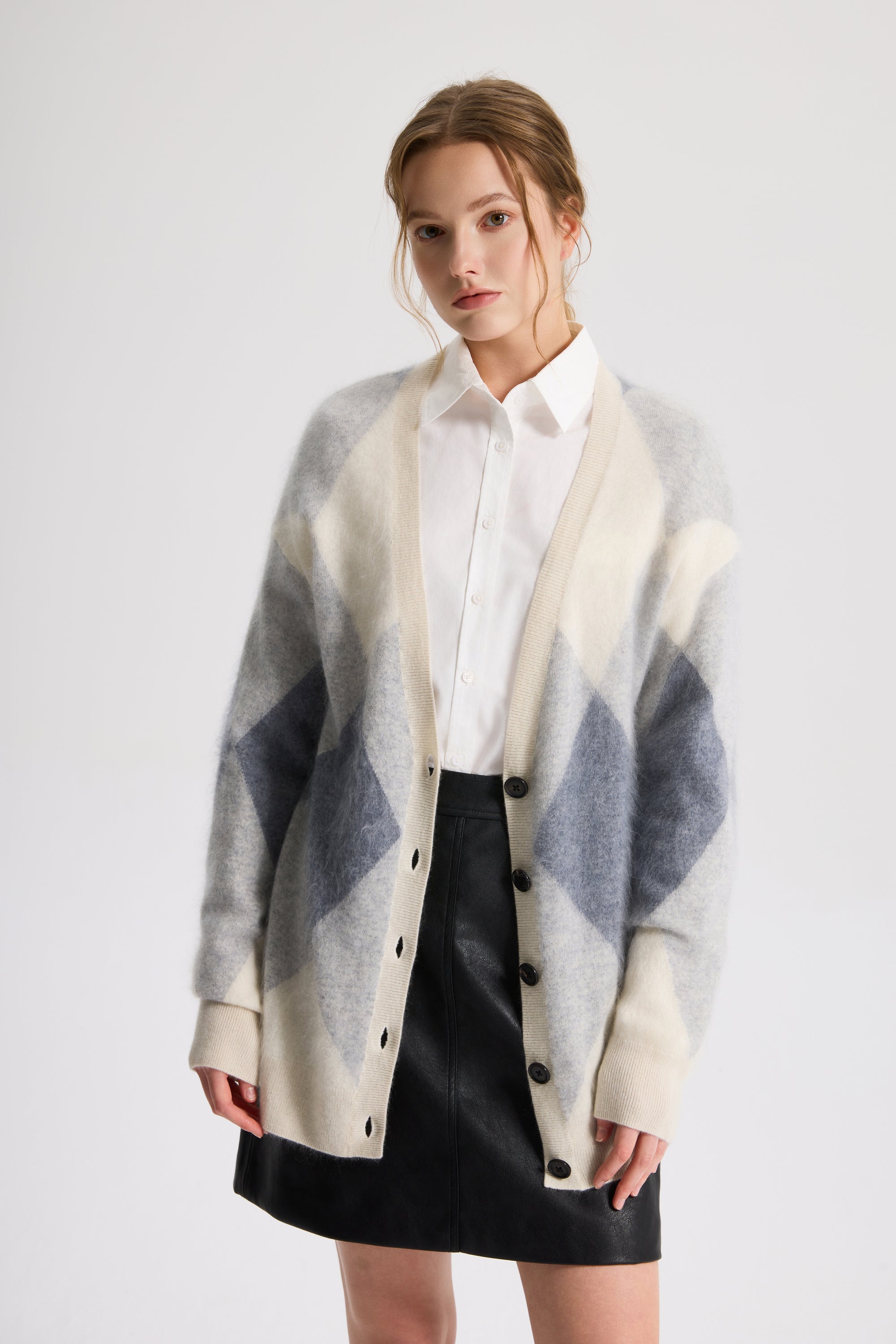 Women’s Brushed Cashmere Argyle Pattern Button-Up Cardigan