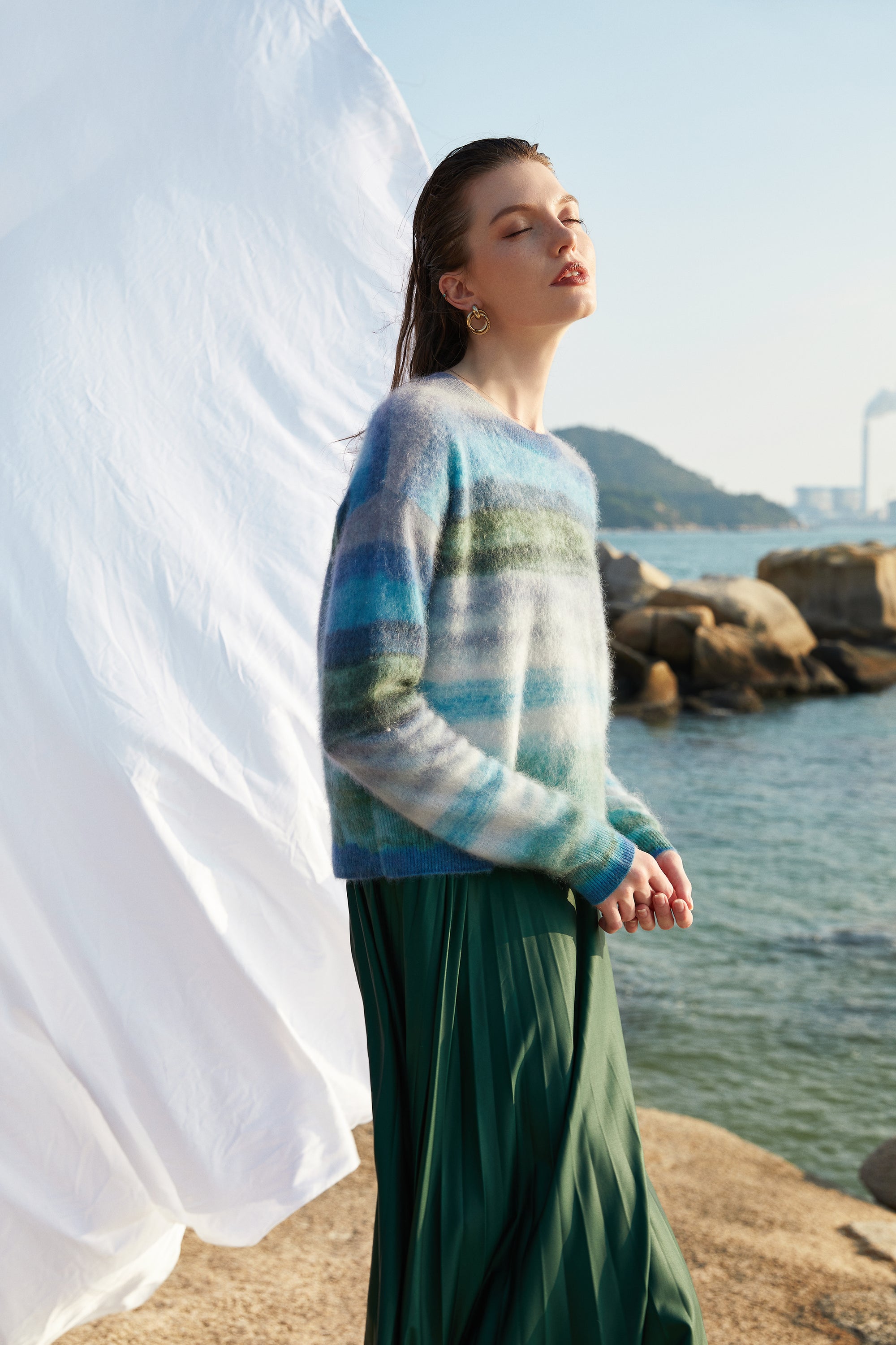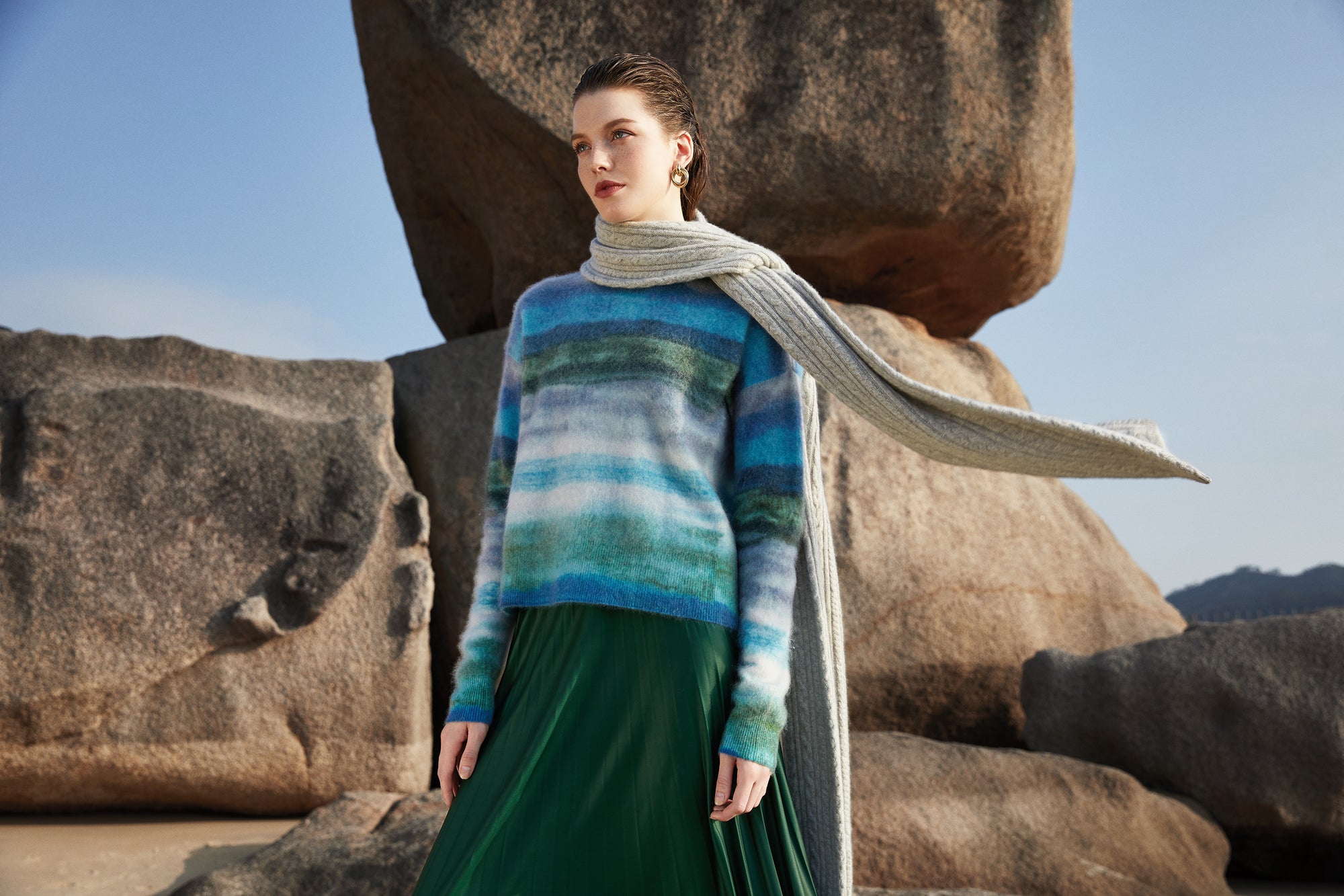 Maintains the natural softness of cashmere while adding a modern artistic touch